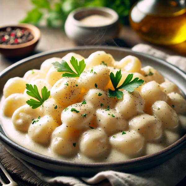 Mlieko s vodou za stáleho miešania privedieme do varu, pridáme cukor, krupicu a povaríme až do zhustnutia (podľa potreby pridáme krupicu, alebo vodu). Odložíme z ohňa a necháme chvíľku odstáť, aby zhustla. Kašu naservírujeme na tanier. Tvaroh zmiešame s vanilkovým extraktom. Tvarohovú zmes dáme na kašu, pridáme karamelový puding, pokvapkáme rozpustenou čokoládou a posypeme nasekanými lieskovými orechmi.